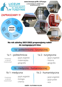 do Liceum Ogólnokształcącego im. Jana Pawła II w Tuszynie na rok szkolny 2021/2022