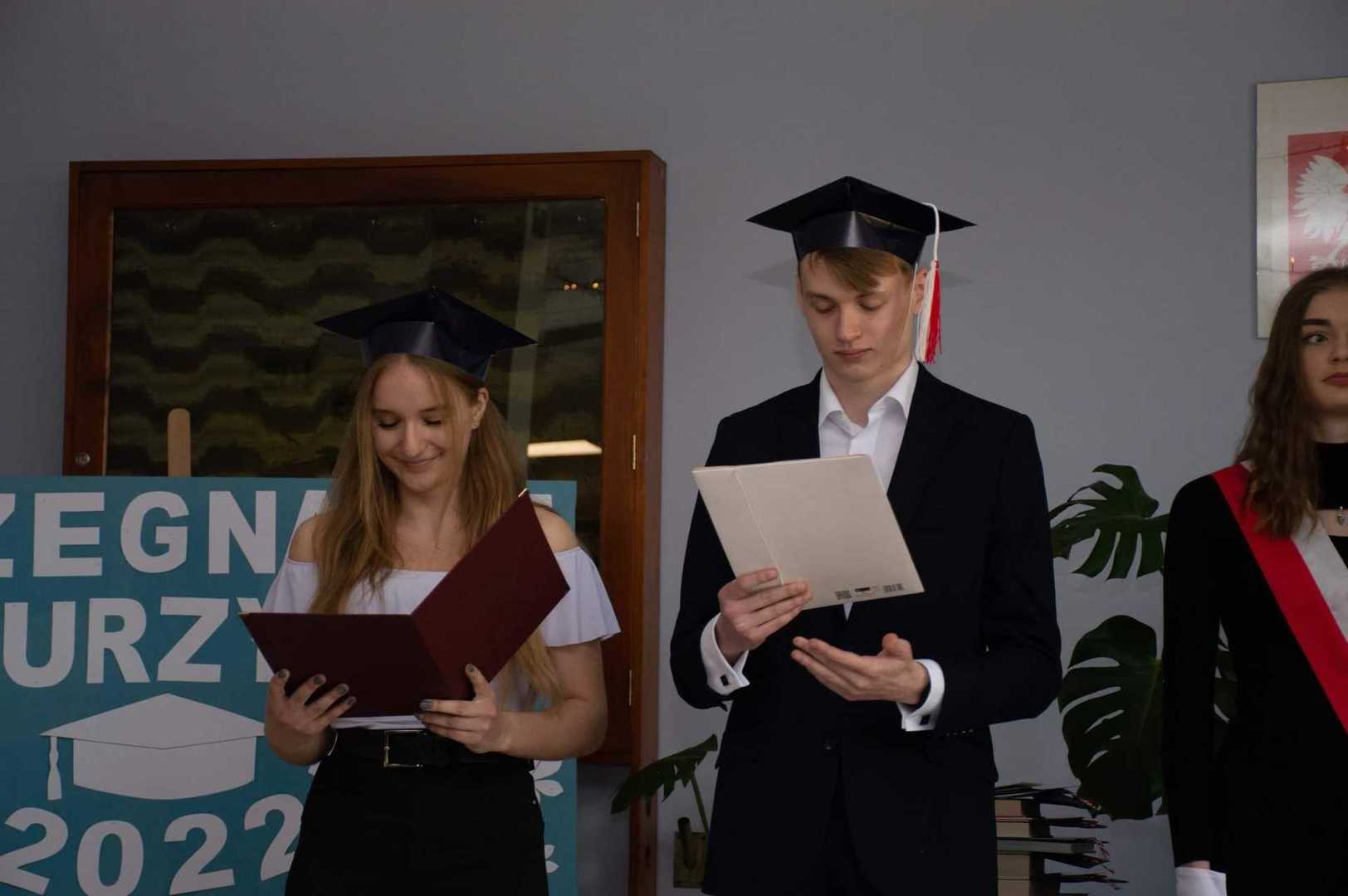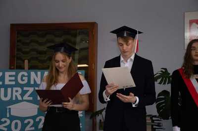 29 kwietnia 2022 roku odbyło się uroczyste zakończenie roku szkolnego tegorocznych maturzystów. Uczniowie klasy trzeciej pożegnali się z wychowawcą, dyrektorem szkoły i nauczycielami. Maturzystom gratulujemy ukończenia szkoły i trzymamy mocno kciuki za powodzenie na egzaminie maturalnym!