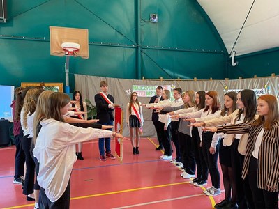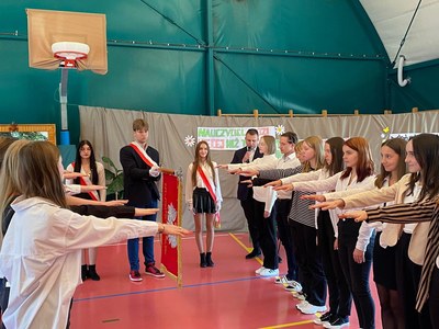Niemniej ważnym elementem uroczystości były zaślubiny klas pierwszych – 1A i 1B. W poczet społeczności szkolnej zostało włączonych oficjalnie 48 nowych uczennic i uczniów! Wyrażamy nadzieję, że na dobre zaaklimatyzowali się w naszych szkolnych murach.