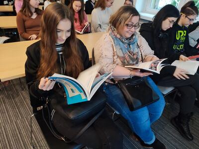 Uczennice i uczniowie klasy drugiej wzięli udział w warsztacie bibliotecznym zorganizowanym przez Wojewódzką Bibliotekę Publiczną im. Józefa Piłsudskiego w Łodzi. Zapoznali się z bogatym księgozbiorem, nauczyli się z niego korzystać oraz zdobyli cenne doświadczenie w wyszukiwaniu źródeł. Zajęcia były realizowane w ramach Narodowego Programu Rozwoju Czytelnictwa 2.0, w którym uczestniczy nasze liceum.