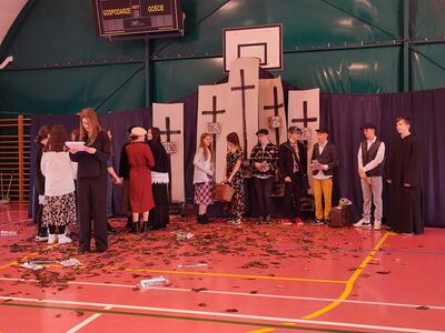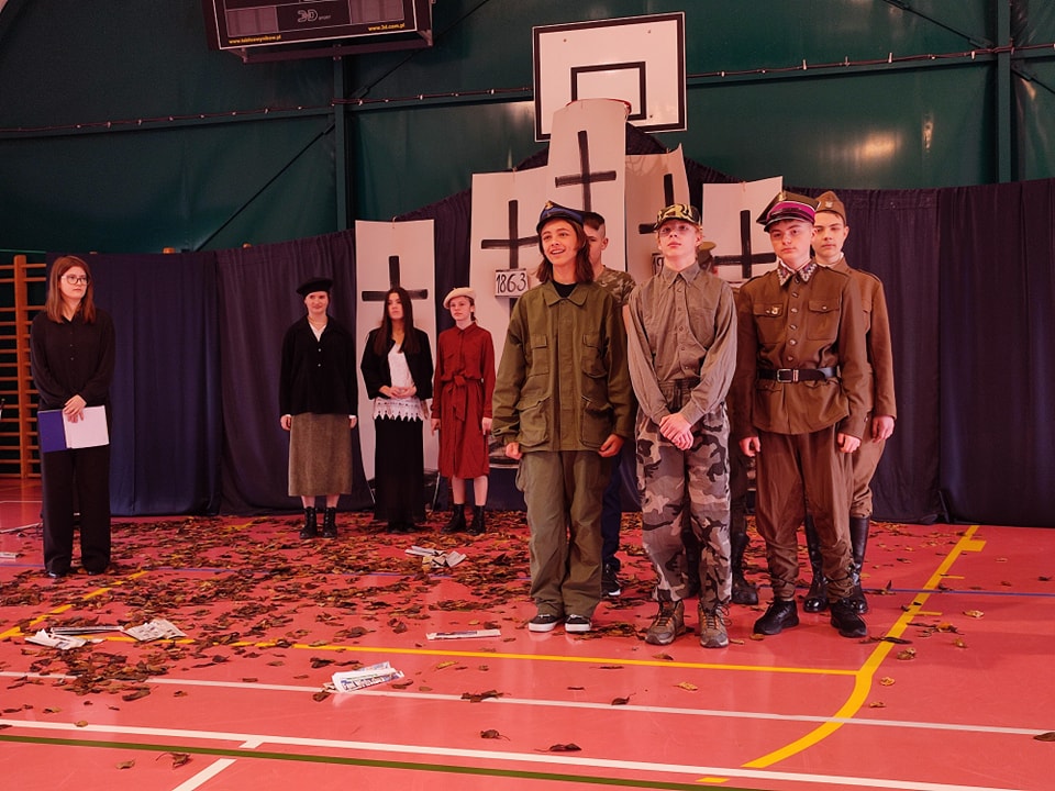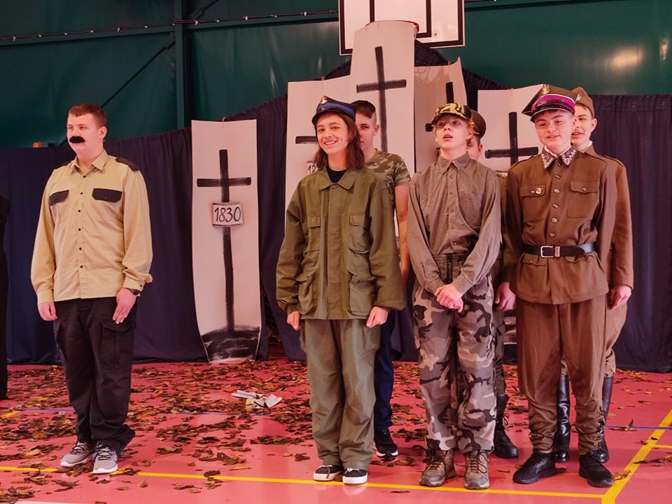 W poniedziałek 13.11.2023 r. w naszej szkole odbyła się uroczysta akademia z okazji Narodowego Święta Niepodległości. Przedstawienie przygotowała p. Joanna Gonicka wraz ze swoją klasą pierwszą. Spektakl wypadł bardzo pięknie i podniośle.
