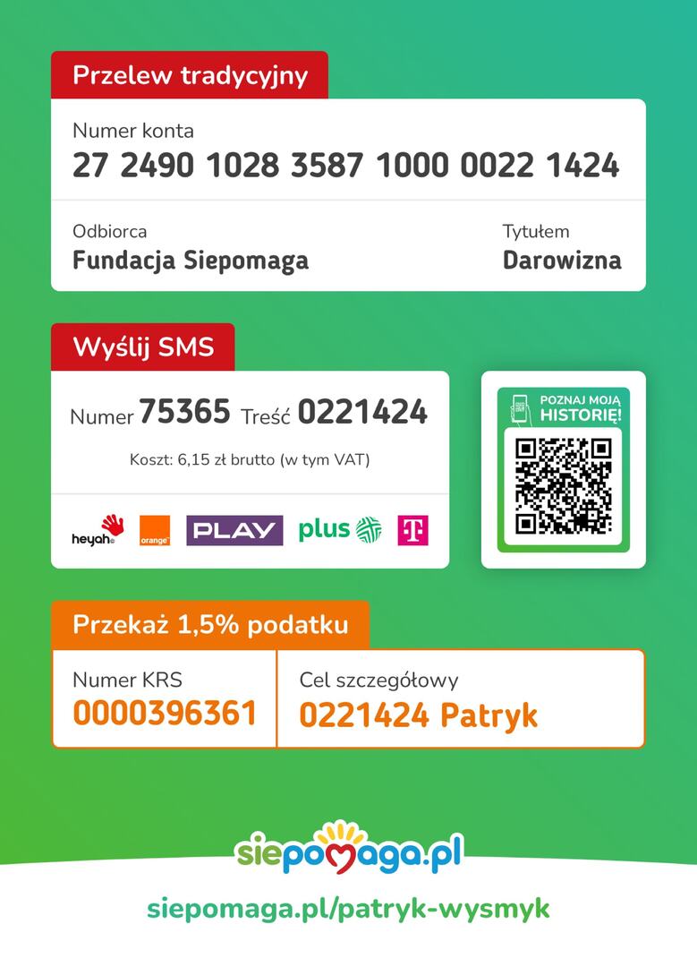 Akcja charytatywna na rzecz Patryka Wysmyka
