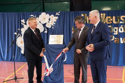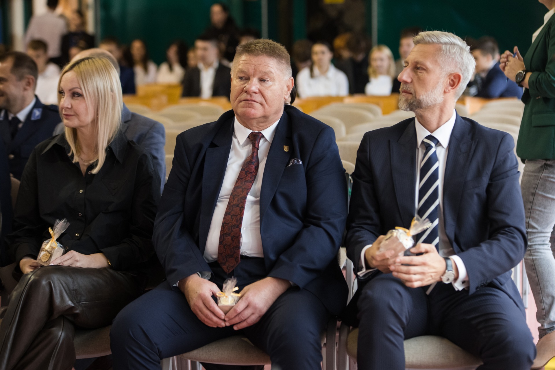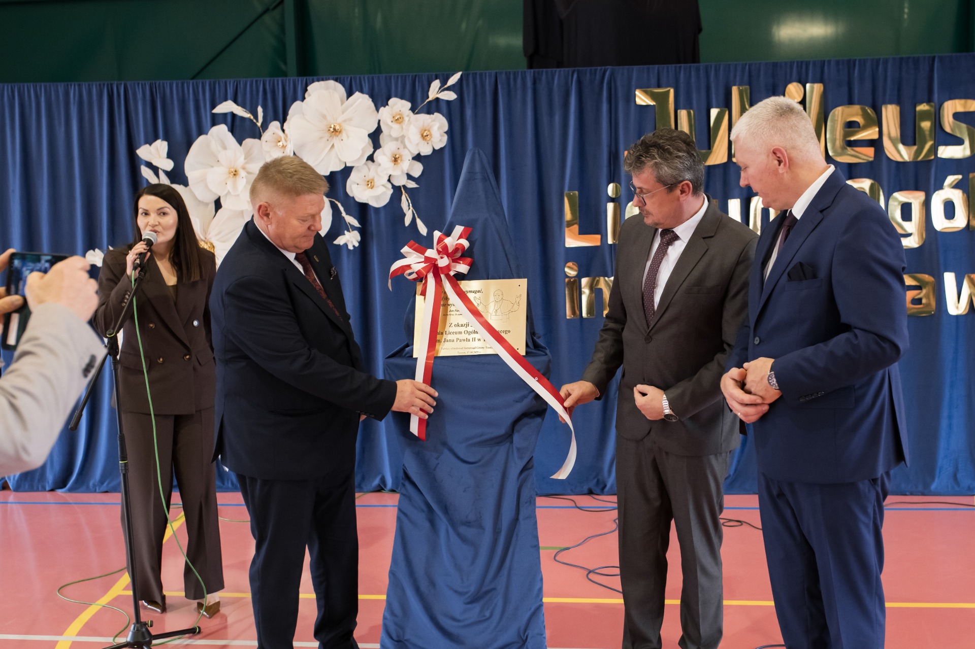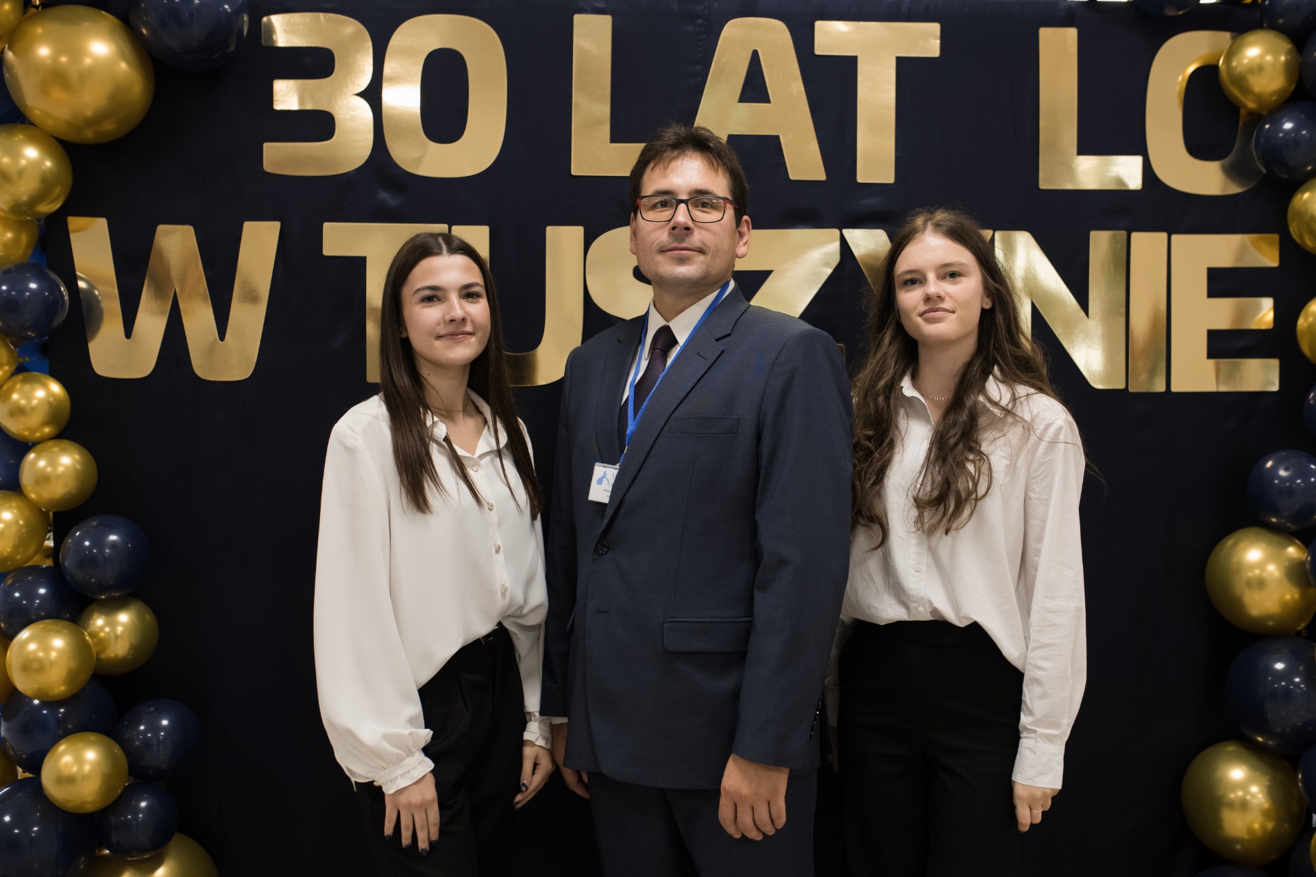 W tym roku wszystkie ważne dla nas chwile zebrały się w jedną piękną całość. Obchody 30-lecia szkoły oraz ślubowanie uczniów klasy pierwszej stworzyły wyjątkową klamrę – łącząc historię i doświadczenie z nowym początkiem i nadzieją na przyszłość. To prawdziwe spotkanie pokoleń – tych, którzy współtworzyli naszą szkołę przez trzy dekady, oraz tych, którzy właśnie rozpoczynają swoją licealną przygodę w murach tej wyjątkowej placówki. Szczególnym momentem uroczystości było odsłonięcie tablicy pamiątkowej, ufundowanej przez Samorząd Gminy Tuszyn. Pan Witold Małecki - Burmistrz Miasta Tuszyna, Pan Mirosław Popecki - Przewodniczący Rady Miejskiej, oraz Pan Grzegorz Płachta - dyrektor szkoły dokonali symbolicznego odsłonięcia tablicy.