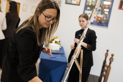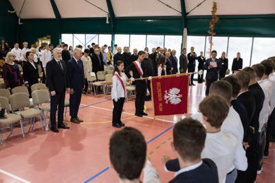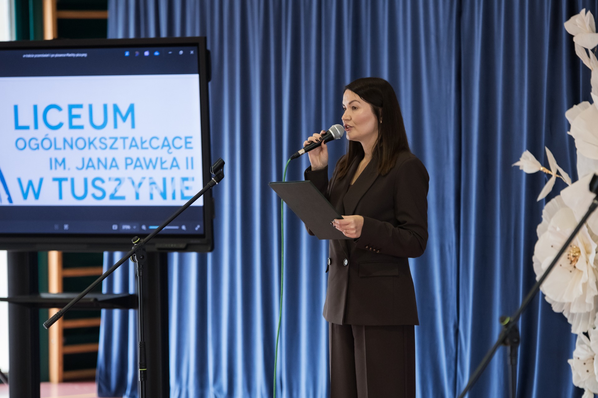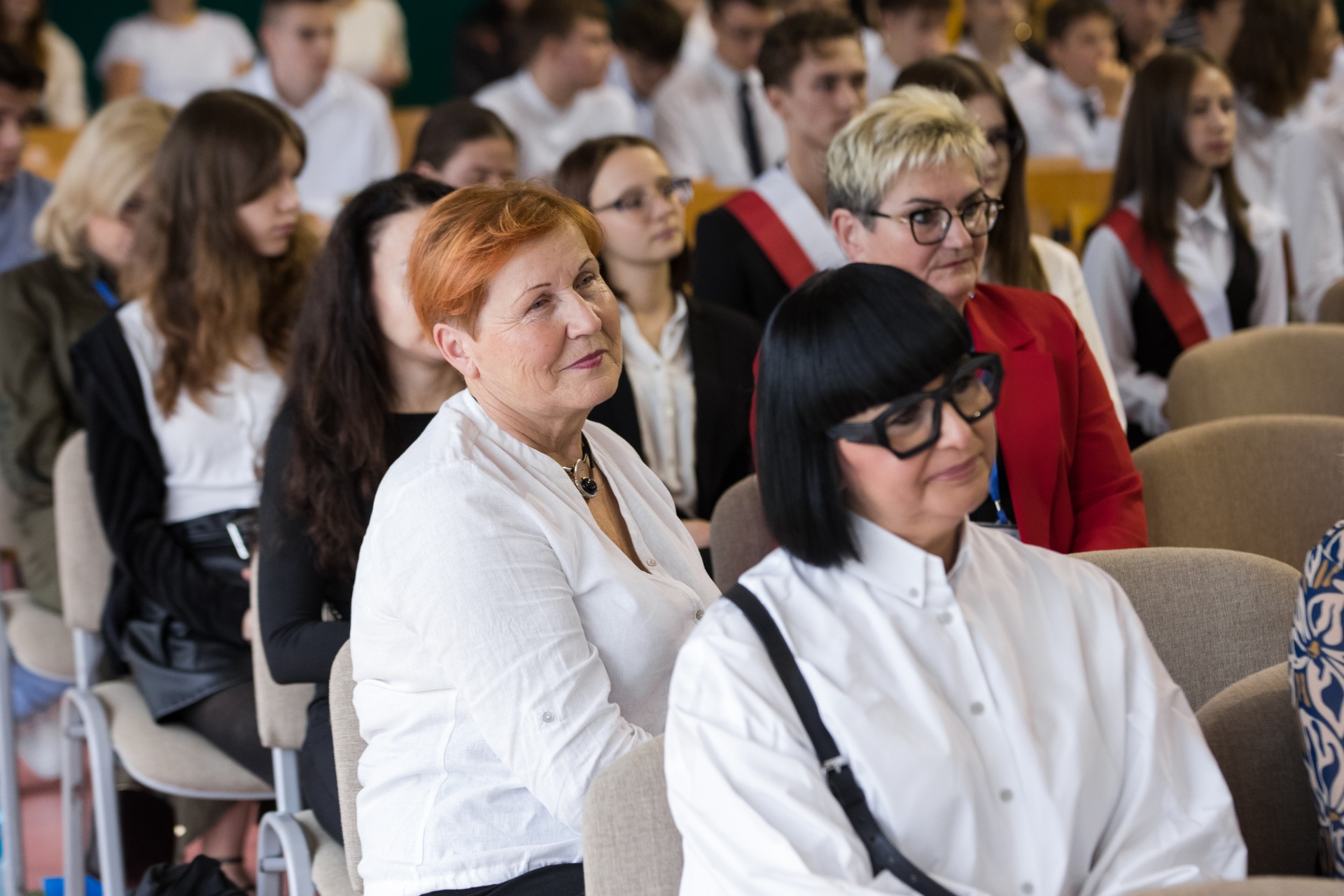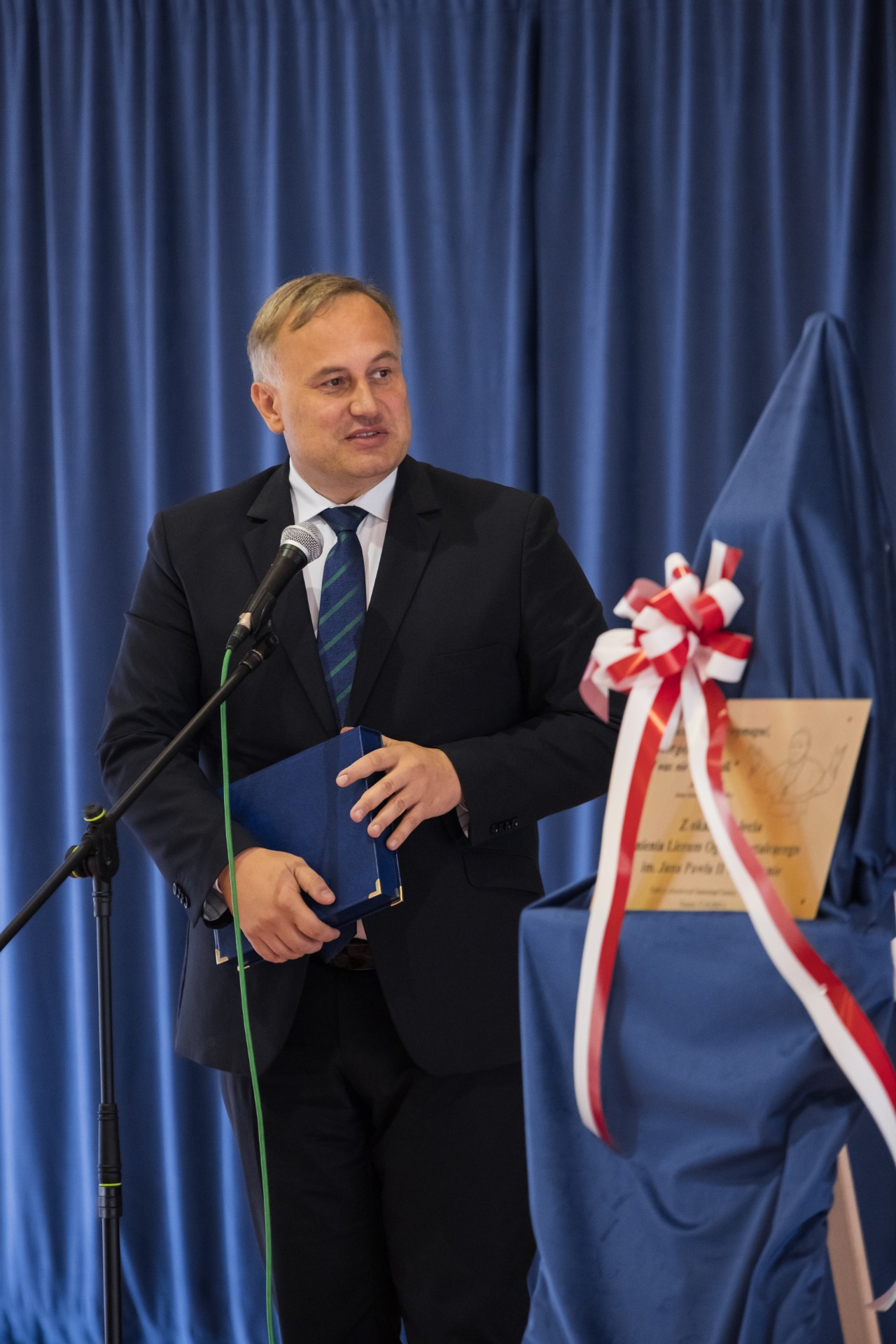 W tym roku wszystkie ważne dla nas chwile zebrały się w jedną piękną całość. Obchody 30-lecia szkoły oraz ślubowanie uczniów klasy pierwszej stworzyły wyjątkową klamrę – łącząc historię i doświadczenie z nowym początkiem i nadzieją na przyszłość. To prawdziwe spotkanie pokoleń – tych, którzy współtworzyli naszą szkołę przez trzy dekady, oraz tych, którzy właśnie rozpoczynają swoją licealną przygodę w murach tej wyjątkowej placówki. Szczególnym momentem uroczystości było odsłonięcie tablicy pamiątkowej, ufundowanej przez Samorząd Gminy Tuszyn. Pan Witold Małecki - Burmistrz Miasta Tuszyna, Pan Mirosław Popecki - Przewodniczący Rady Miejskiej, oraz Pan Grzegorz Płachta - dyrektor szkoły dokonali symbolicznego odsłonięcia tablicy.