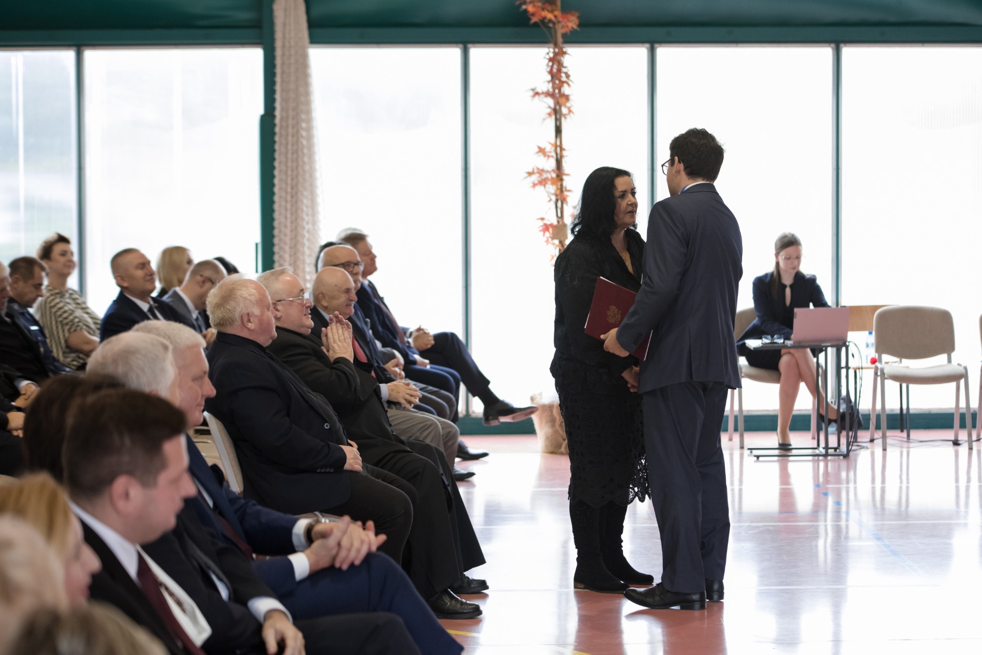 Rady Miejskiej w Tuszynie wraz z radnymi miasta, Pani Ewie Gładysz – Wicestaroście Łódzkiemu Wschodniemu, Pani Joannie Krawczyk – Zastępcy Burmistrza Miasta Tuszyna, Pani Ewie Koteckiej – Wiceprzewodniczącej Rady Powiatu Łódzkiego Wschodniego, Panu Sylwestrowi Golusowi i Panu Bogumiłowi Skorupskiemu – Radnym Rady Powiatu Łódzkiego